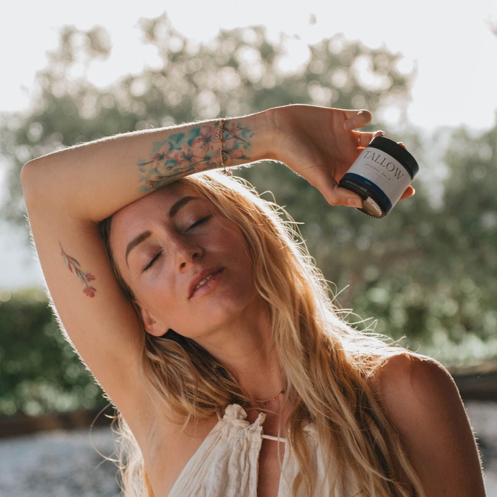 Tallow -baume de suif- est composé à 100 % de suif provenant de bovins biologiques nourris à l'herbe et fournit des vitamines que l'on ne trouve dans aucun autre aliment. Le suif est un excellent hydratant qui nourrit et hydrate la peau, la laissant douce et souple sans obstruer les pores. Le suif de bœuf était utilisé il y a plus de 2 000 ans par les Romains, les Grecs, les Égyptiens et les Chinois pour les soins de la peau et même pour la cicatrisation des plaies. Aujourd’hui, le suif de bœuf connaît une redécouverte quasi révolutionnaire alors que de plus en plus de personnes reconnaissent et apprécient les bienfaits des ingrédients naturels.