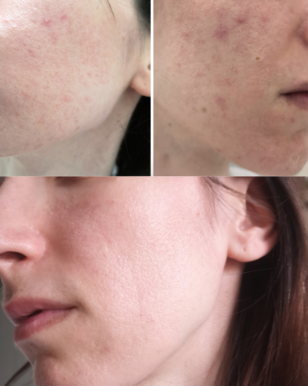 J'ai de la rosacée et je suis très contente de ma peau ! Moins de sécheresse. La meilleure chose pour ma peau jusqu'à présent. Merci beaucoup !