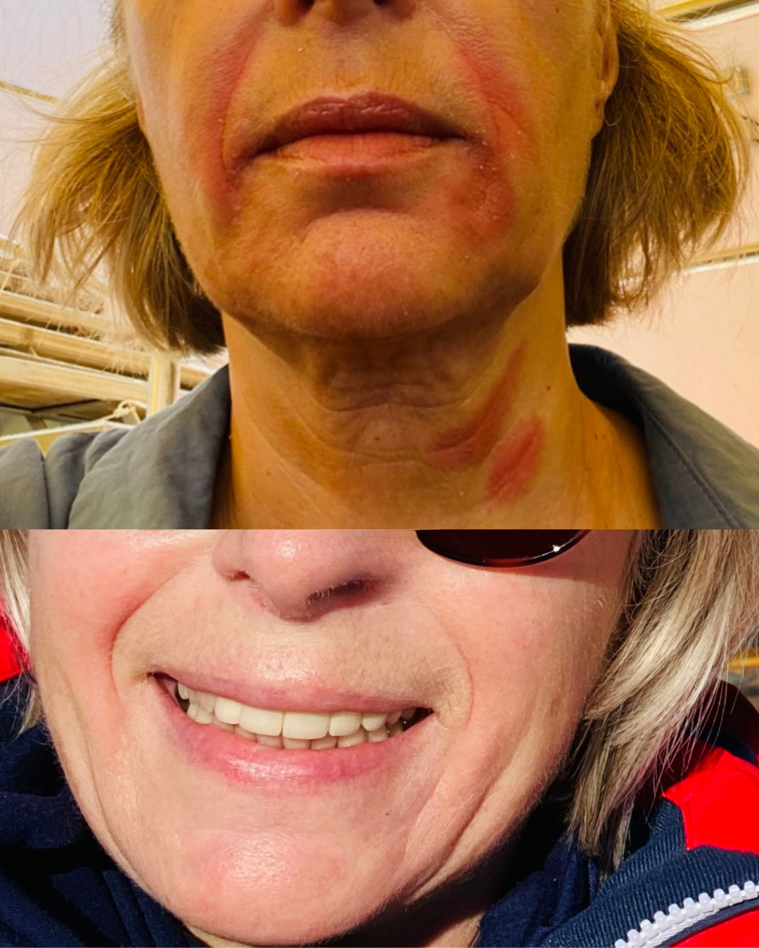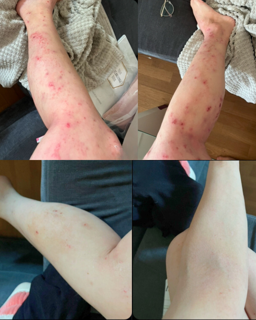 Mes mains étaient ouvertes et à vif comme un lézard et saignaient et brûlaient constamment. Jusqu’à présent, rien n’a aidé à long terme, pas même de la part d’un médecin. ... La surface de ma peau est enfin à nouveau plus uniforme et la sécheresse a un peu disparu... Quel soulagement. Et aussi sur les bras et les jambes